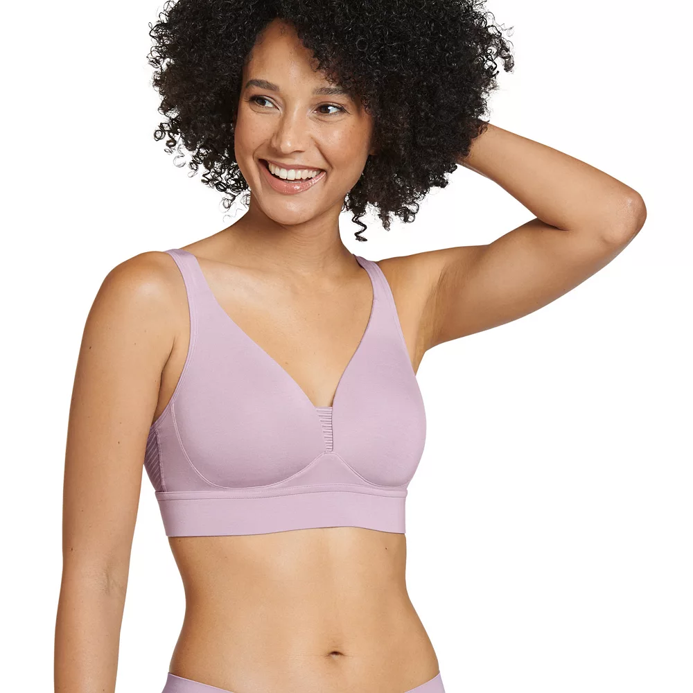 The support of a bra with the ease of a bralette … and did we mention pretty? This women’s Jockey Forever Fit Supersoft Modal V-Neck Molded Cup Bra has soft, wireless cups with an even softer lining provide natural shaping and comfort.