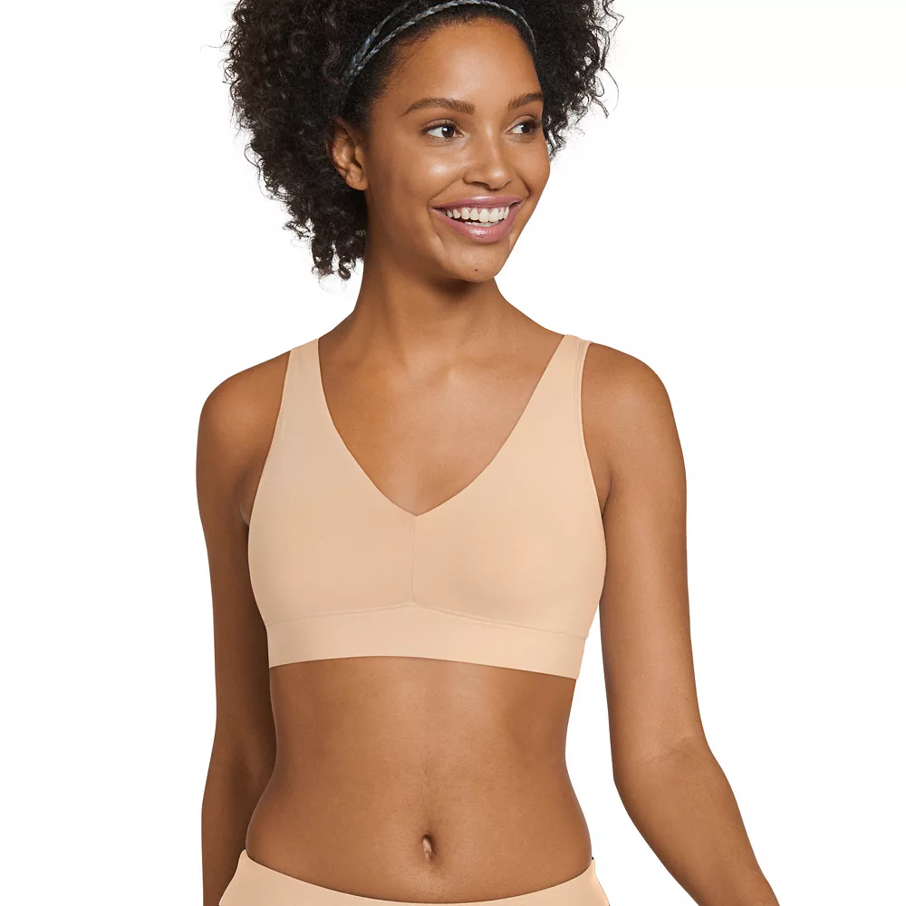 This light and luxurious Jockey Eco Seamless Bralette Molded Cup Plunge Bralette features a soft, stretchy style that glides smoothly over your curves.