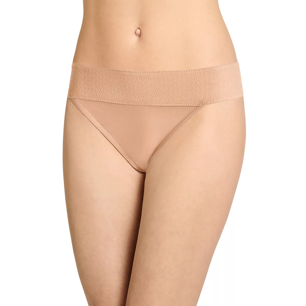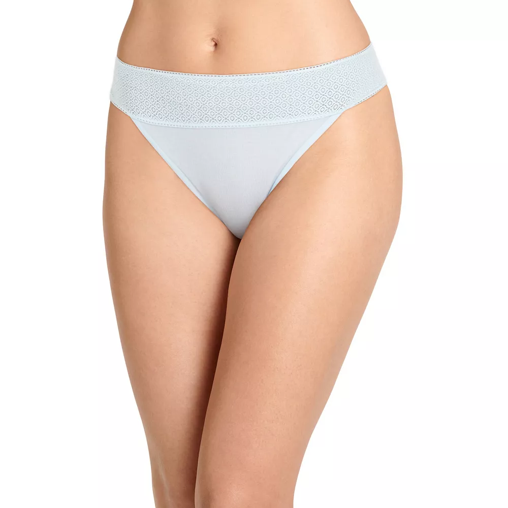 These women’s Jockey® Soft Touch Lace Modal Thong Panties fit and feel like it’s barely there. Even the soft, wide lace waistband looks invisible under your outfits and the smooth and stretchy modal fabric provides the utmost comfort.