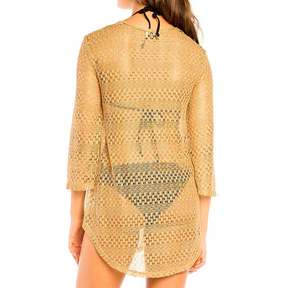 Show your best silhouette in this trendy shirttail tunic cover up from Jordan Taylor.